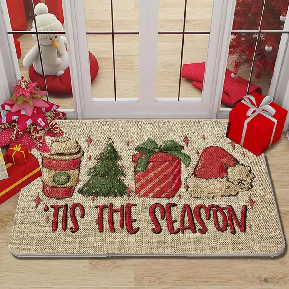 1.Christmas Additions: Bring the jolly to your doorstep with our Christmas front door mat. Its bright colors and vivid shapes of present boxes, Christmas trees, hats, and letters generate a strong festive atmosphere. Perfect for use during Christmas and designed with present boxes, this mat adds an extra touch of holiday cheer to your home